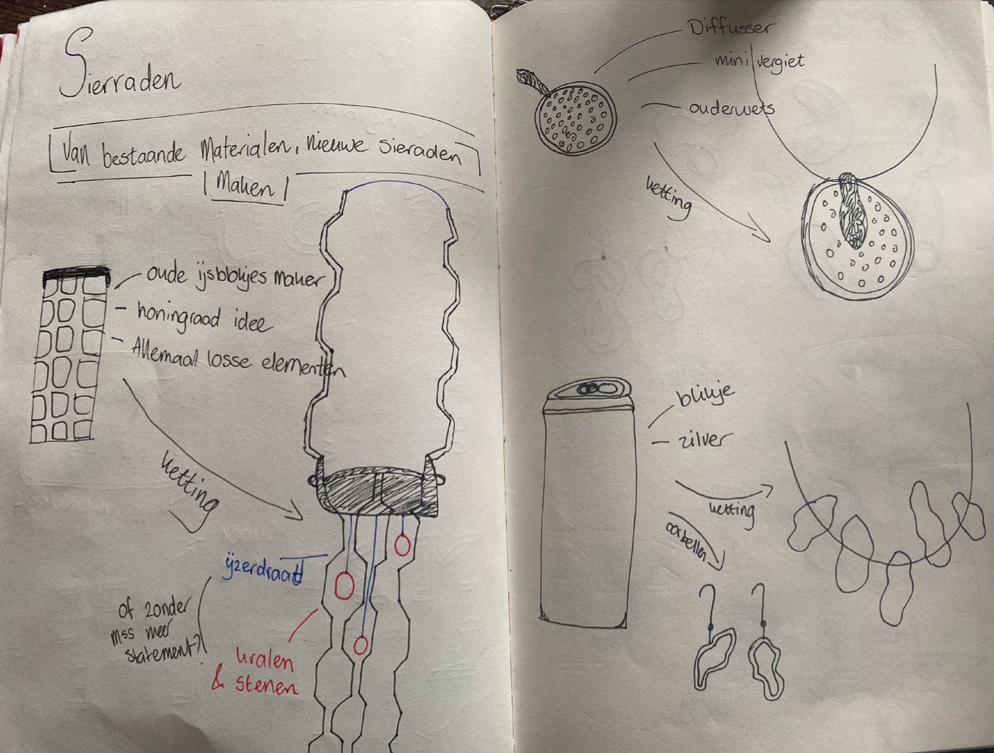 Sieraden hebben voor mij een speciale betekenis. Elk sierraad dat ik dagelijks draag, heb ik gekregen van familie of vrienden. Zo draag ik ze elke dag bij me en zijn ze er voor mij. Ze hebben elk hun eigen verhaal, bijvoorbeeld welke verjaardag, of op welke gelegenheid, en van wie ik deze heb gekregen. Hierdoor hecht ik waarde aan het sierraad en zie ik het niet alleen als accessoire. Met deze gedachte begon ik mijn project 'Nieuw leven' waarbij ik sieraden ga maken van gebruikte/bestaande materialen, Niet wetende, hoe, wat of waar ik moest beginnen.