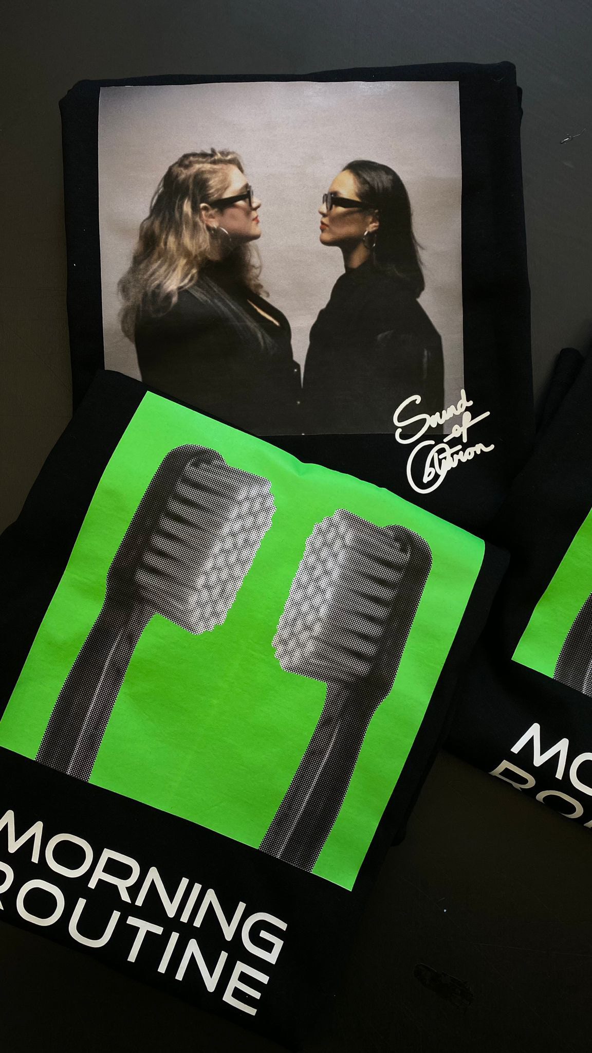 Onze merchandise voor ons nummer Morning Routine is geïnspireerd op onze dagelijkse ochtendroutines. Ze zijn misschien verschillend, maar ze hebben allemaal (hopelijk) dezelfde basis. Denk aan ontbijten en tandenpoetsen. Wat past er nou beter bij dan de dagelijkse producten die we 's ochtends gebruiken als onze merchandise? Wil je tijdens het tandenpoetsen naar ons liedje luisteren? Of eten/drinken van ons servies? Of rondlopen met onze nieuwste track op je rug? Wie wil dat nou niet in de ochtend?